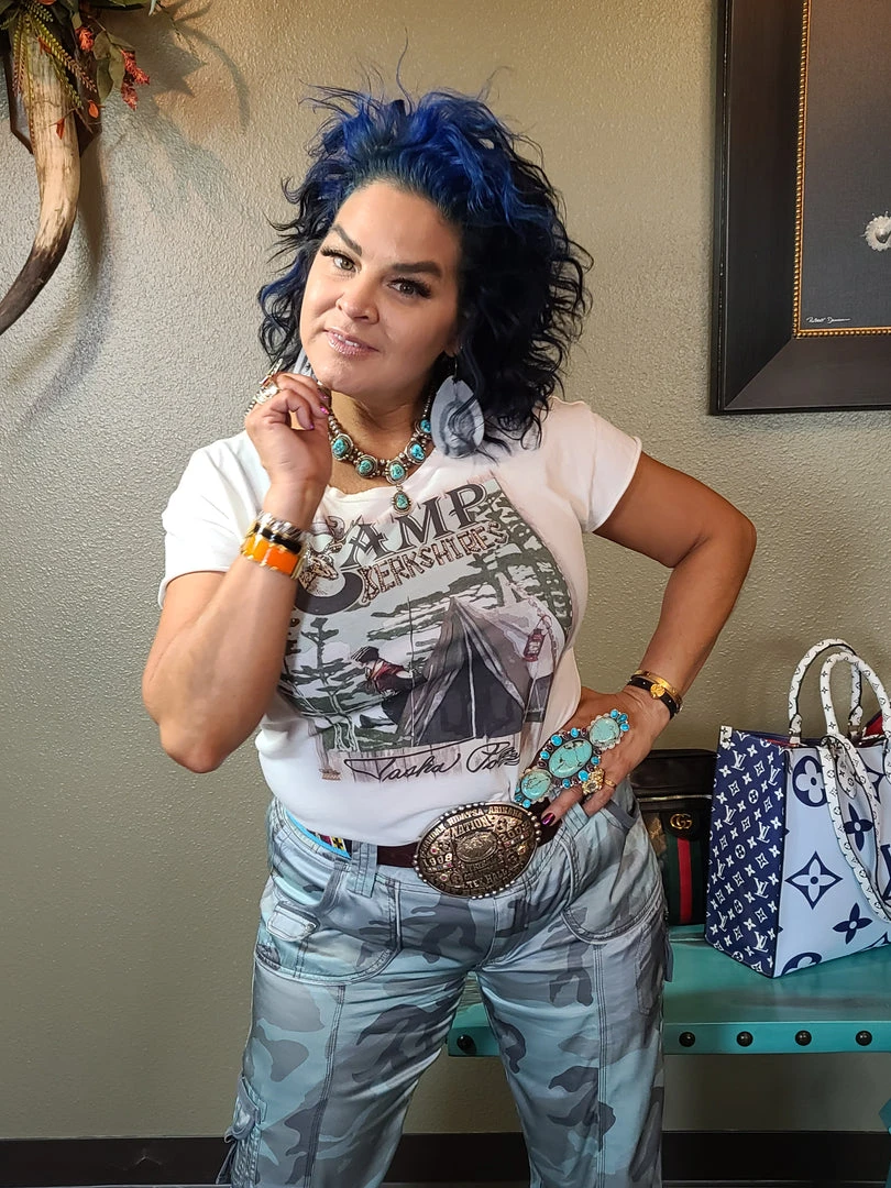 Graphic tee by Tasha Polizzi that just makes you want to go camping! ย Super soft tee.ย